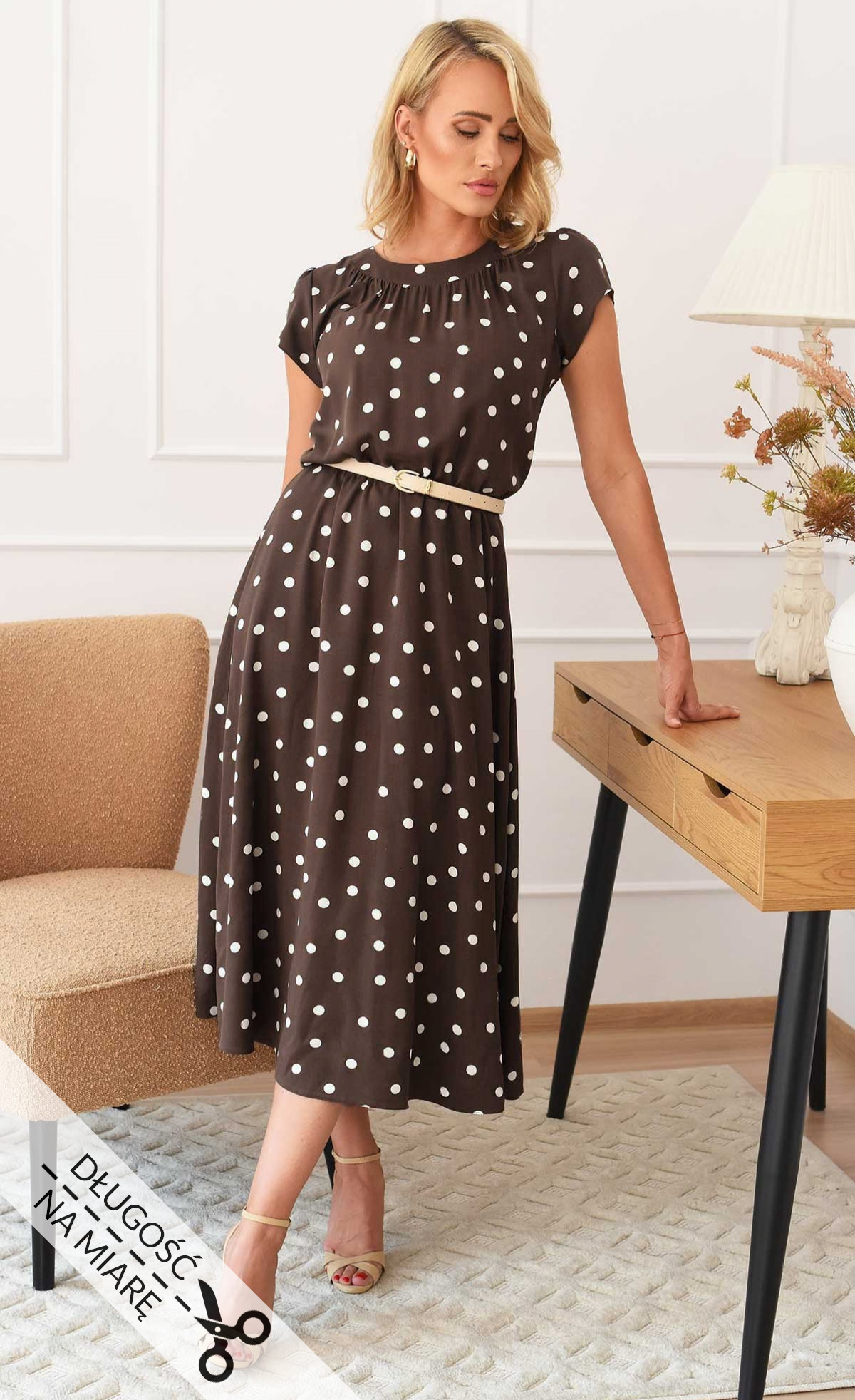Sukienka w grochy Midi ALA (Brązowa)