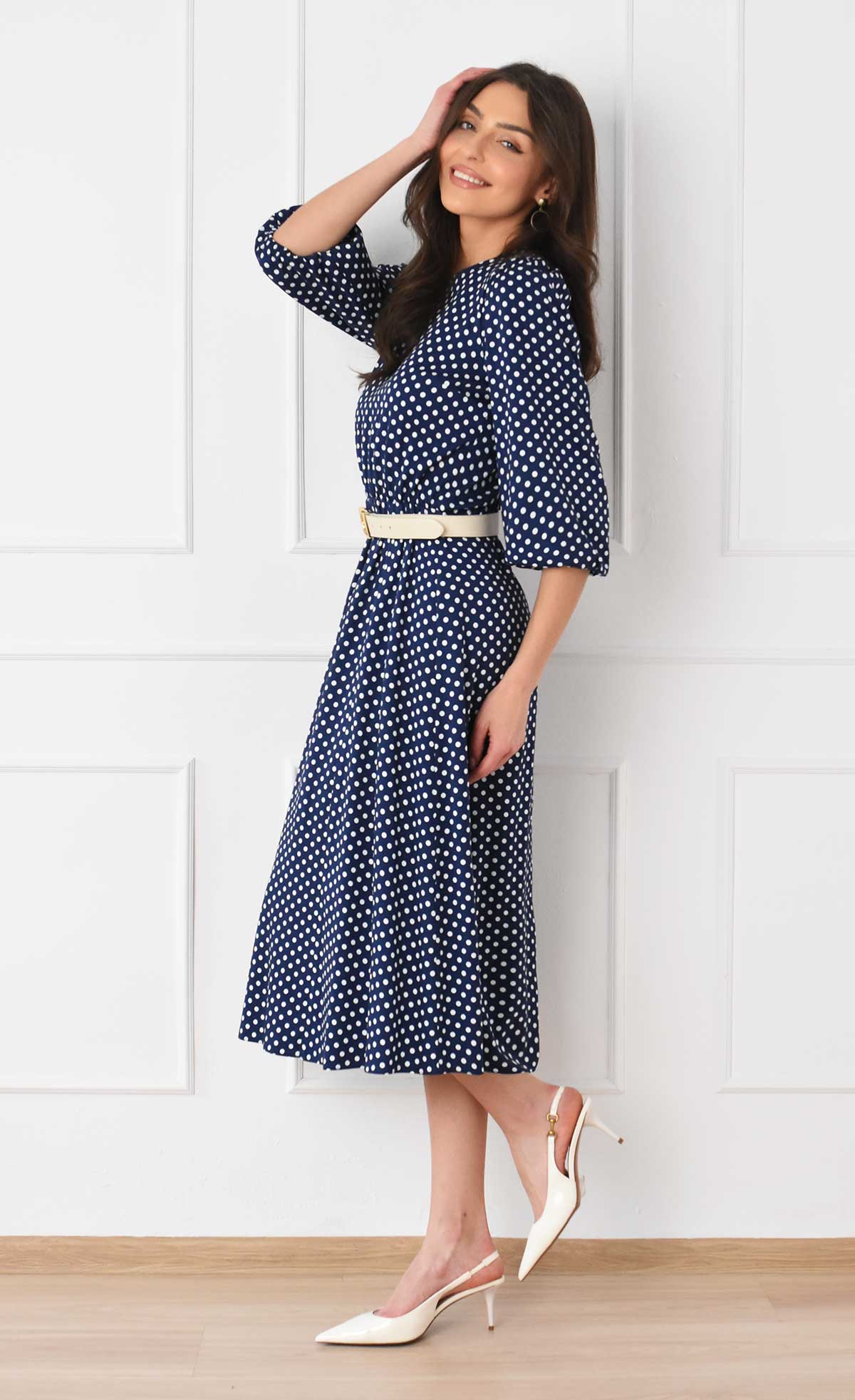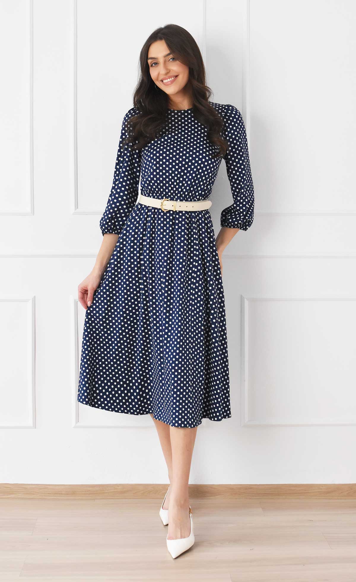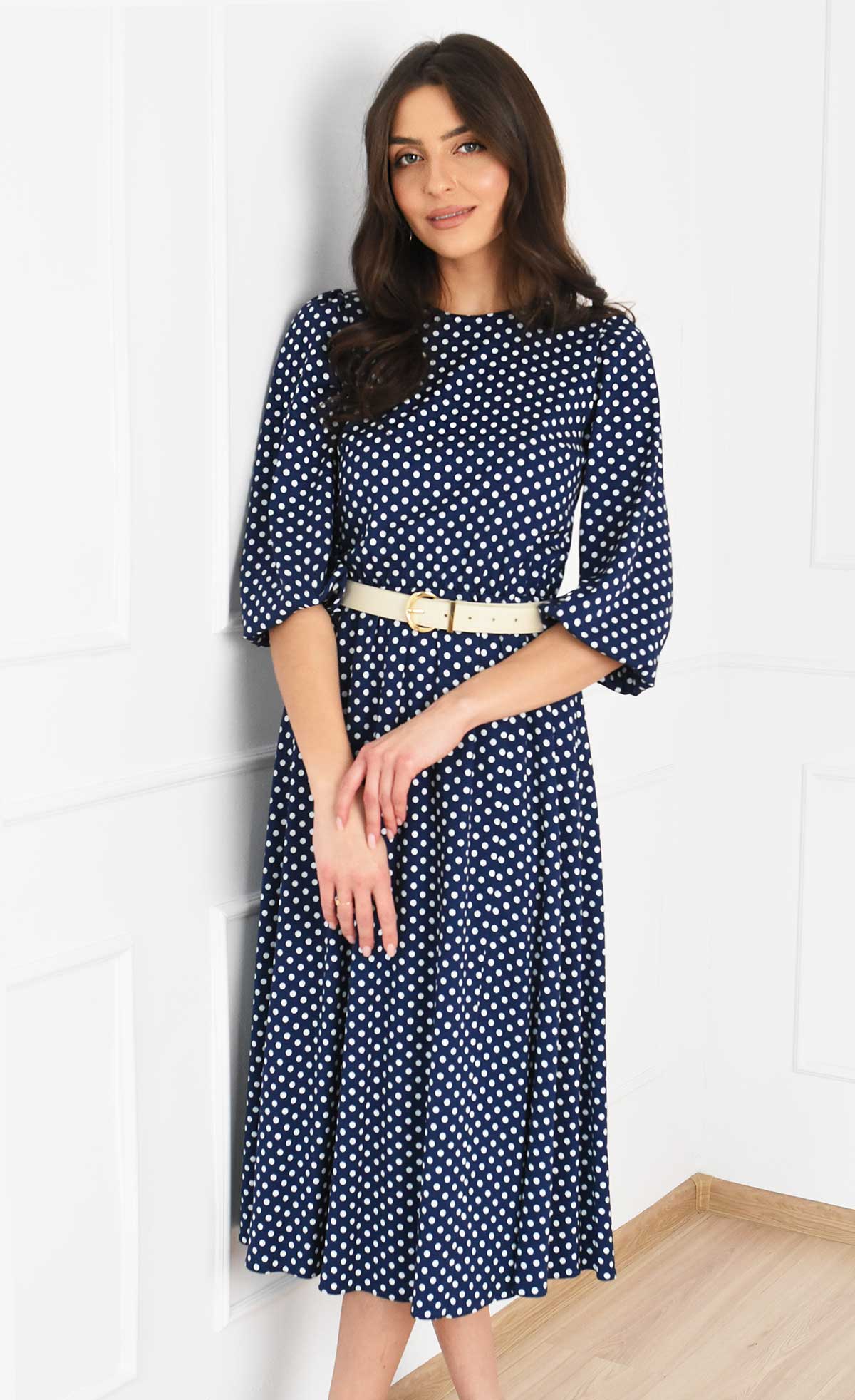 Sukienka w grochy Midi KATIA (Granatowa)