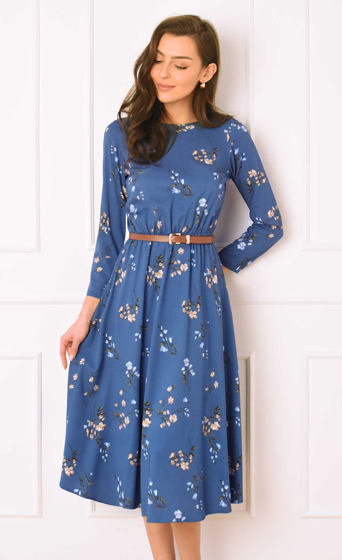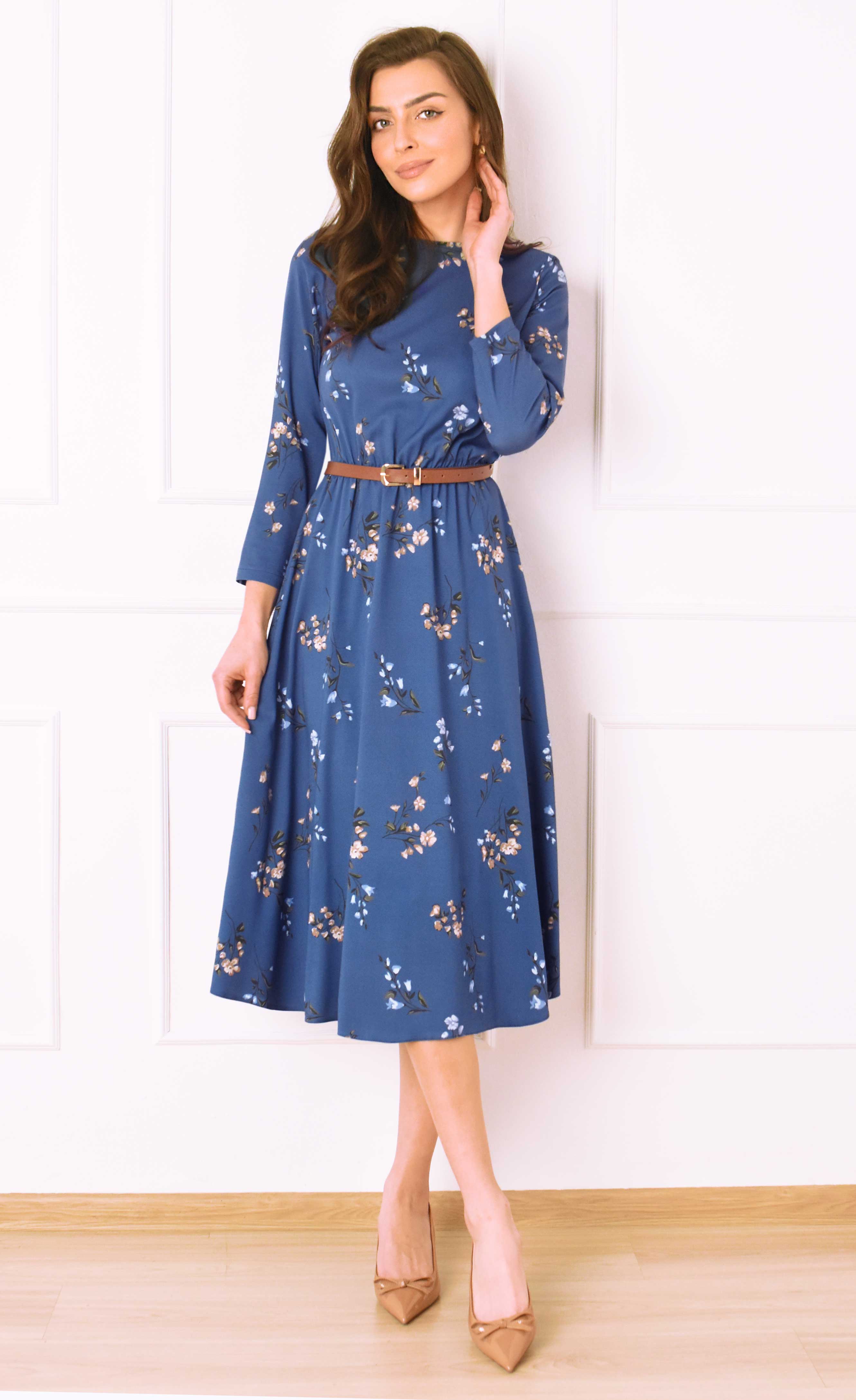 Niebieska sukienka w kwiaty